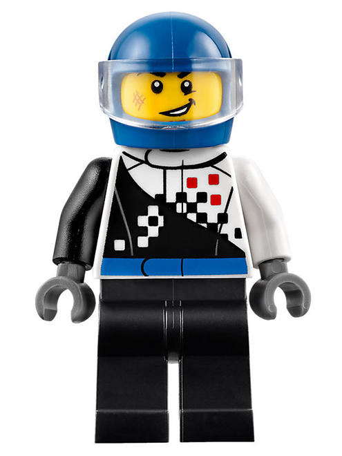 Checkered Race Torso, Blue Helmet, Black Legs